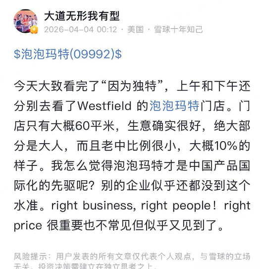 当下泡泡玛特估值处于历史低位,海外高增验证需求韧性,IP出海逻辑远超单纯盲盒赛道。段永平未明示持仓,但态度转向已释放强烈价值信号。市场此前过度担忧生命周期与增速放缓,眼下更应关注全球化壁垒、IP矩阵迭代与估值修复空间,短期情绪催化叠加基本面支撑,中期修复行情值得期待。