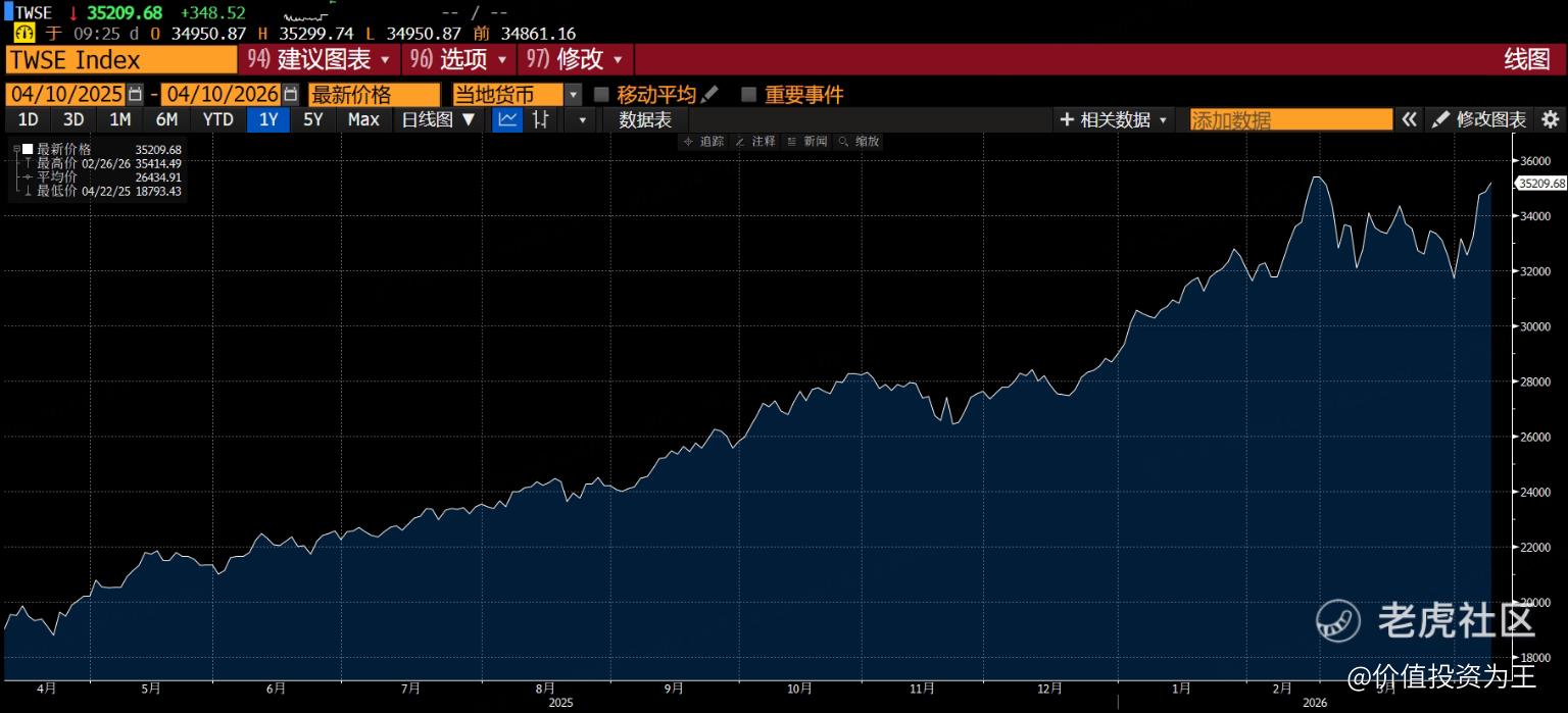 台湾股市据历史最高点不足1%,有望成为全球最早收复失地的股指!