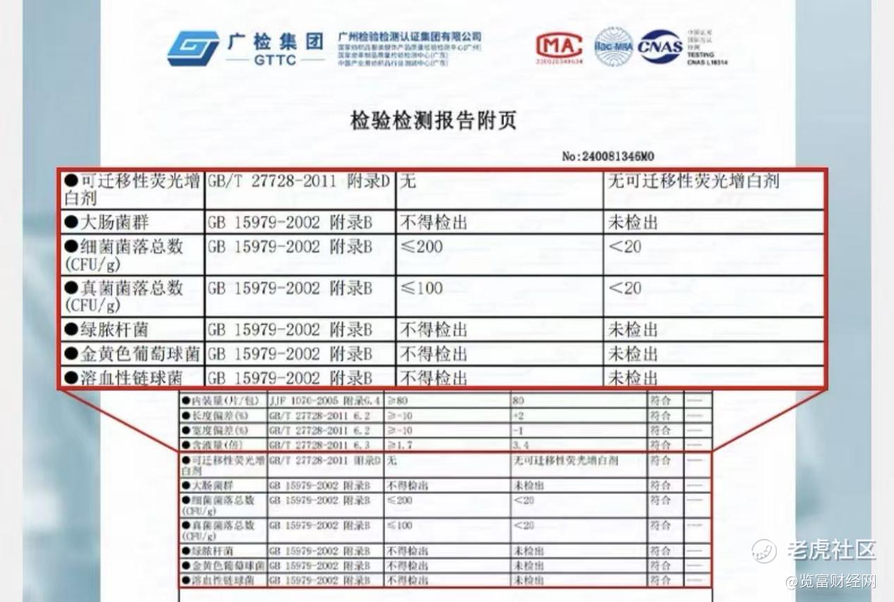 从监测结果来看,行业整体呈现“良莠不齐”的态势。基础指标方面,所有样品包装密封性能全部合格,长度、宽度偏差及含液量均符合国标要求,未出现外观破损、异物污渍等问题,但有3款产品存在内装量短缺问题,其中一款100片/包的样品实际仅72片;卫生指标方面,所有样品均未检出大肠菌群、铜绿假单胞菌等致病菌,细菌菌落总数、真菌菌落总数及可迁移性荧光物质均符合国标限值。