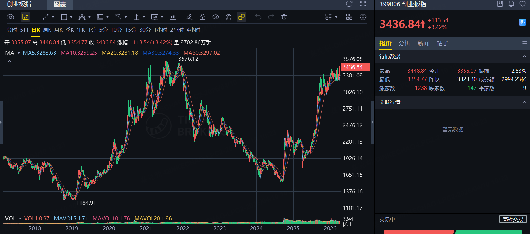 今日,创业板指数大涨超3%,率先收复美伊战争失地,创2021年12月以来新高,距2021年牛市最高点仅一步之遥! $创业板指(399006)$