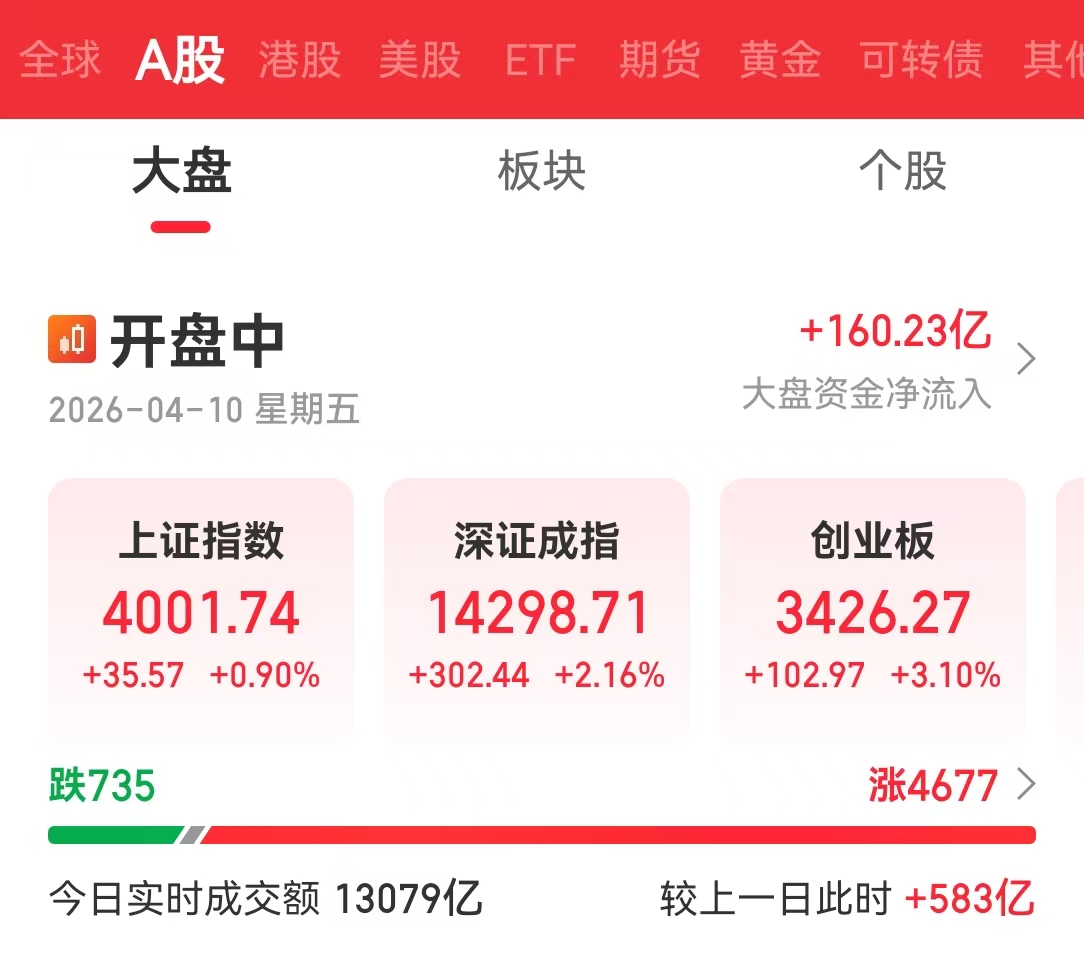 券商股大涨彻底点燃了市场做多的热情,今日A股上涨个股数量超4600家,成交额较昨日放大近600亿: