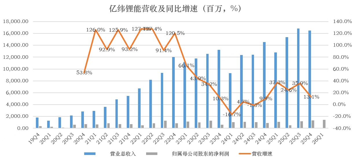 根据亿纬锂能发布的一季度业绩预告显示,净利润增速约30%,保持了较快的增长: $亿纬锂能(300014)$