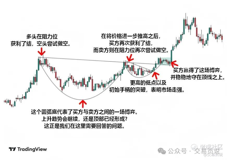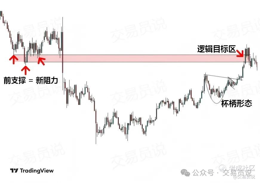 很多人只盯着形态本身的“外观”。而我更关注的是市场背景、所处的时间周期,以及杯柄是否真正确认了多头力量——因为真正的优势,就藏在这些细节里。