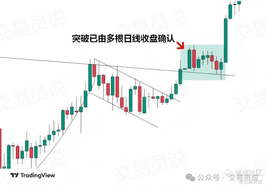 所谓突破,至少要有一根日线收盘价站上颈线。如果连续多天或多根K线收在颈线之上,将大幅提高你对突破有效性的信心。