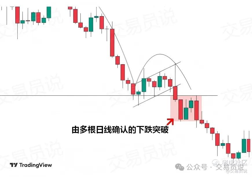 确认跌破至少需要一根日线收盘价跌破颈线,最好有多根日线收在颈线下方,以提高对跌破有效性的信心。