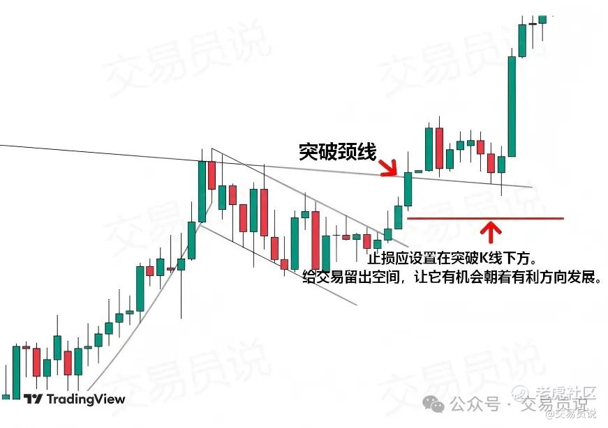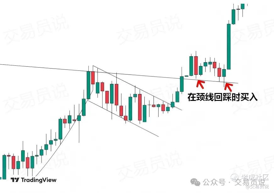 理想的入场方式,是在颈线被回踩并转化为新的支撑位时进场。