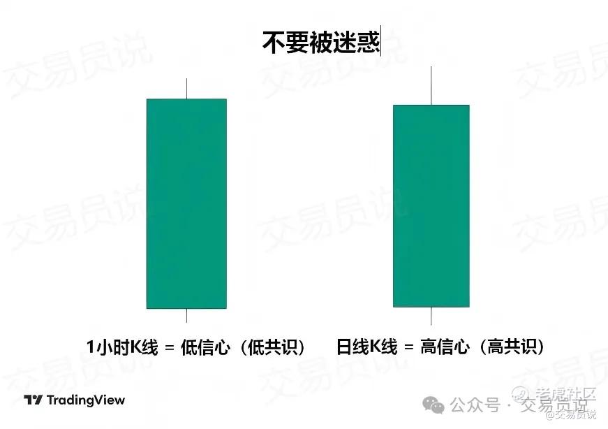 原因在于低周期K线中的交易笔数(“投票”数量)较少,因此信号更容易失真。换句话说,低时间周期更容易出现假信号。