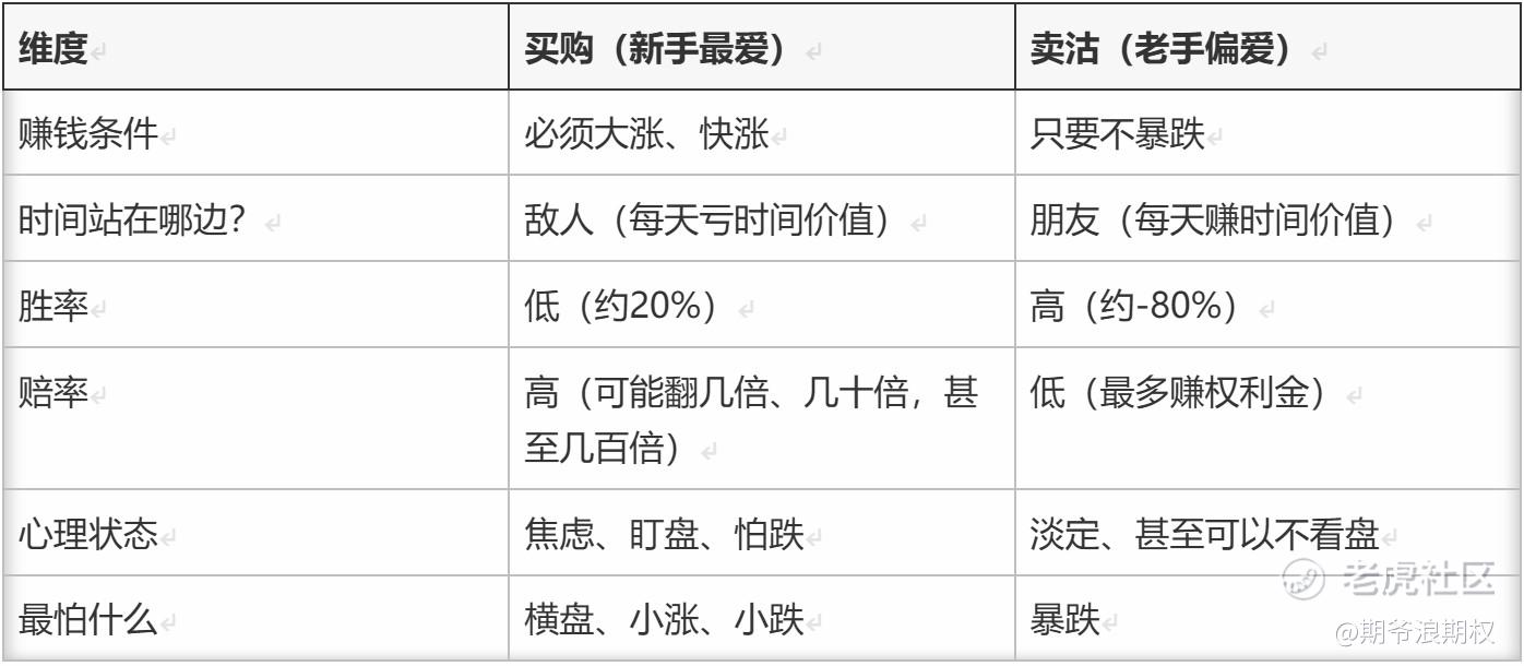 新手像打了鸡血一样冲去买购(买入认购期权,也叫买call),幻想着“一天翻倍、一夜暴富”;而老手呢,慢悠悠地卖沽(卖出认沽期权,也叫卖put),像个收租的地主老爷,嘴里还念叨着:“不急不急,时间于我吉。”