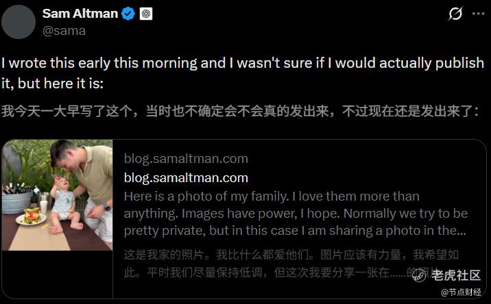 事发后,奥特曼发长文报平安,并亮出孩子和男友照片,似乎有一种惊魂未定的感觉。他在文中反思自己此前低估了舆论煽动带来的危险,以及自己在OpenAI期间的失误与骄傲。