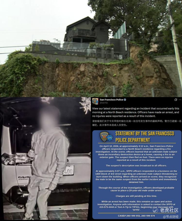 4月10日凌晨3点45分,旧金山豪宅区的一声脆响打破了寂静。一名20岁男子向OpenAI CEO萨姆·奥特曼(Sam Altman)价值2700万美元的住所投掷了燃烧弹。