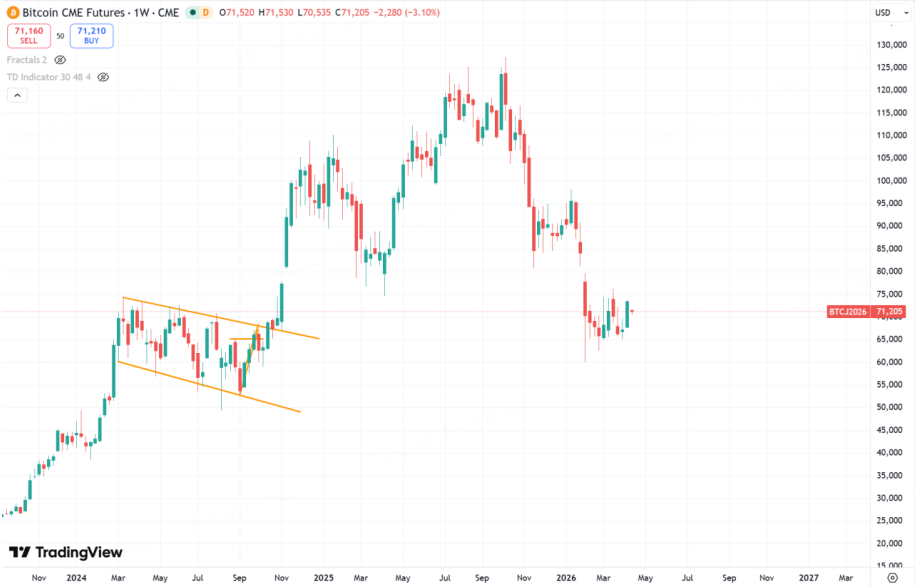 从上周的行情结果来看,第三种概率会更高一些,其次是第二种,第一种的机会有,但也需要时间才能完成。这两周几个资产的表现则可以一定程度作为辅助参考指标。第一个是加密资产,以比特币为例,持续2个多月的低位震荡正静待方向选择。7.4/7.6万的水平突破意味着回踩8万的跌破口,也会暗示相对risk on的风险偏好。跌破6万则是新一轮跌势开启和大恐慌的暗示。