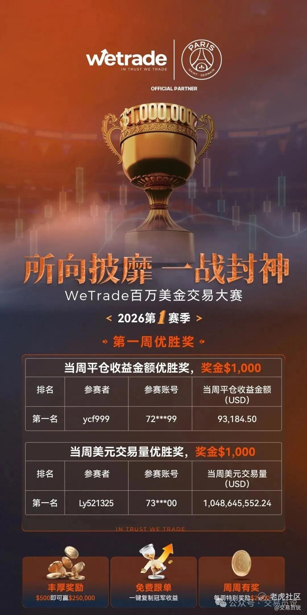全球交易者瞩目的WeTrade 2026百万美金实盘交易大赛第一赛季火热对决中!在宏观不确定性与市场波动显著放大的背景下,开赛第10天便迎来高能开局,多位交易高手脱颖而出,交出亮眼成绩单,点燃全球交易热情。