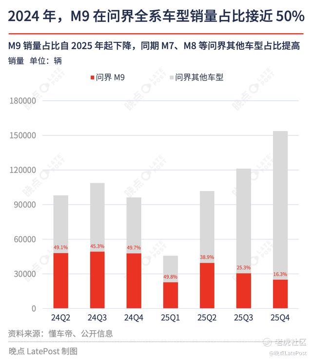 问界 M9 上市前,**已凭问界 M7 证明自己具备卖爆一款车的能力,但还没有证明**能从 0 到 1 做出一款成功的汽车产品。因此在当时,**内部对问界 M9 寄予厚望,希望它能填补这一空白。