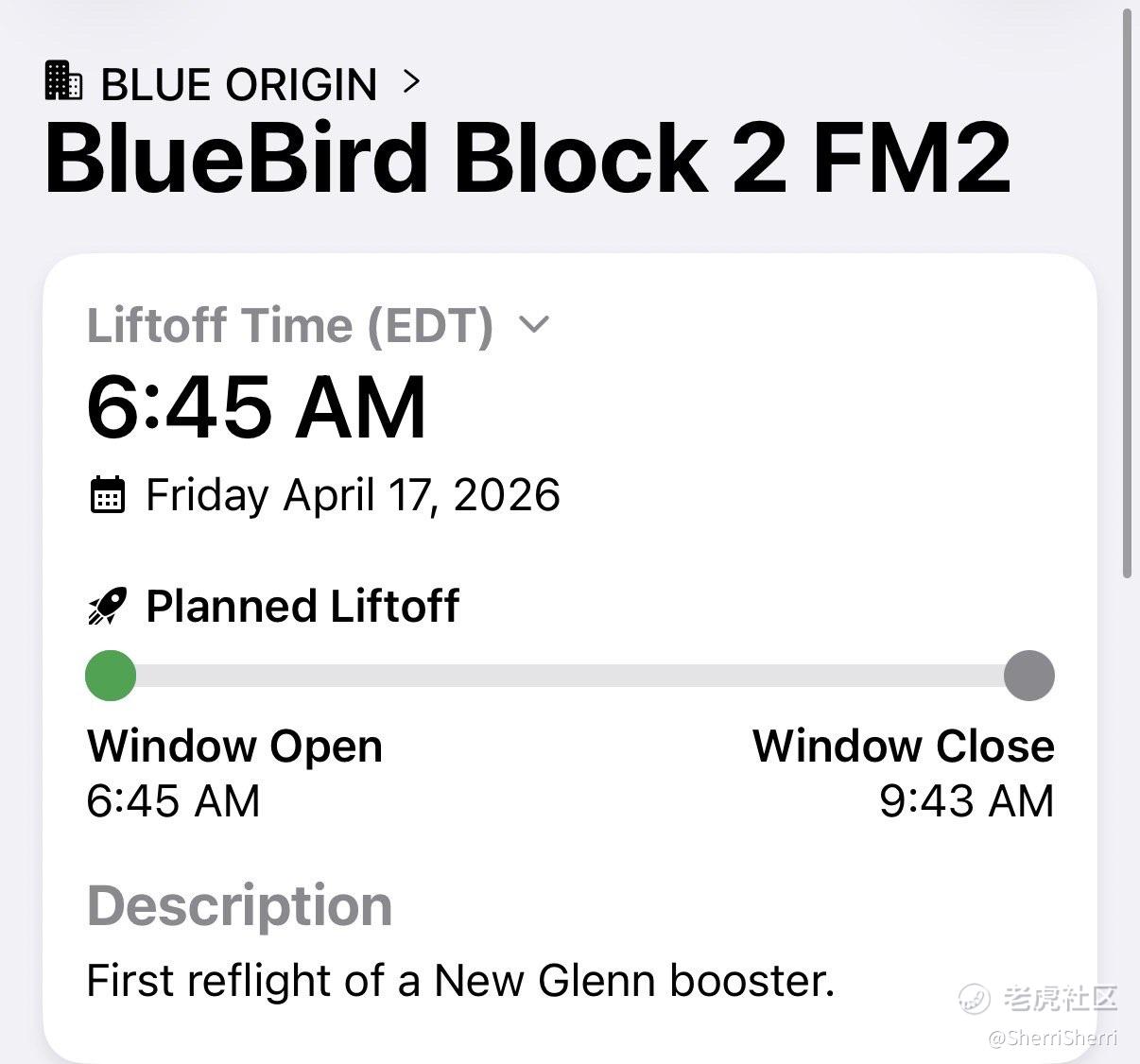 AS­TS Bl­u­e­B­i­rd 7 于美国东部时间4月17日(周五)上午6:45发射。$AST SpaceMobile, Inc.(ASTS)$