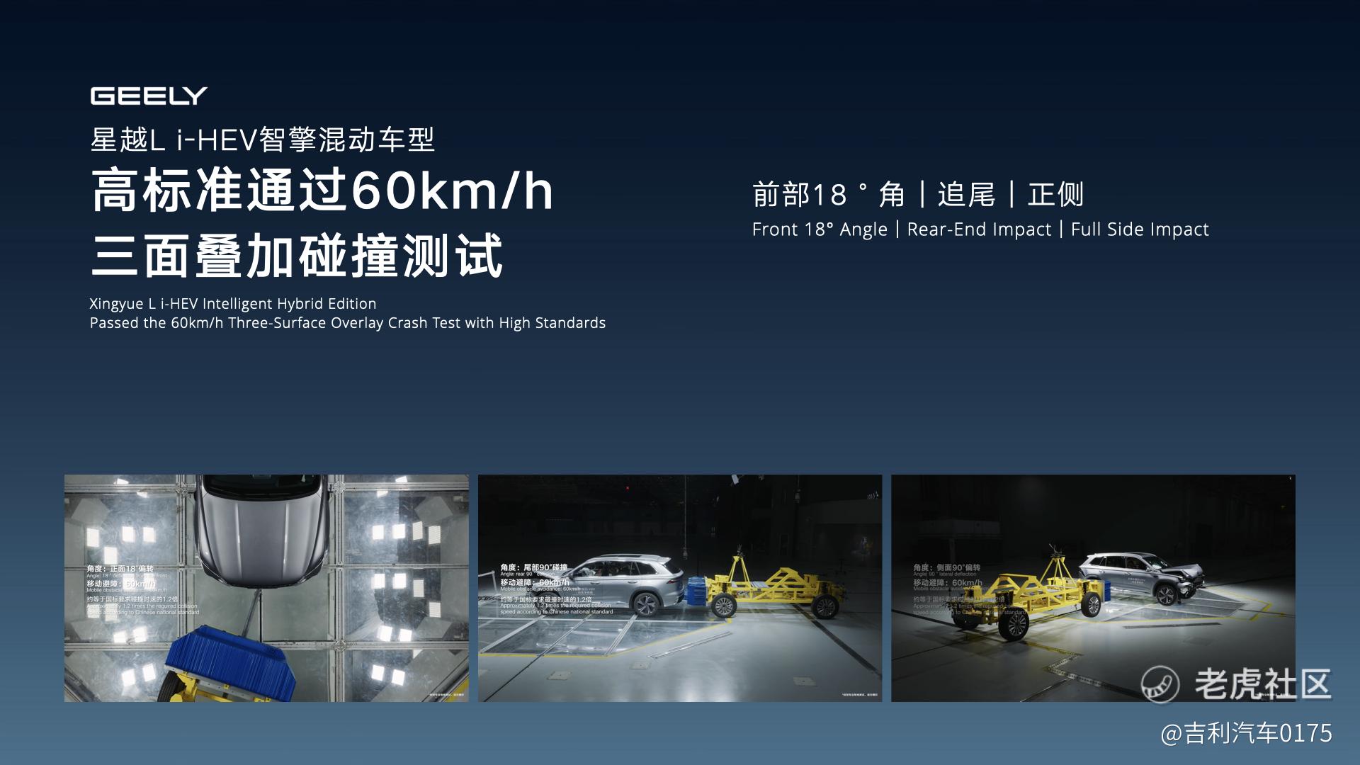 整车安全方面,为充分检验i-HEV智擎混动的安全实力,星越L i-HEV智擎混动经由中国汽研认证,在60km/h的车速下,成功通过全球首个HEV车型前部18角偏转+后部+正侧三向叠加碰撞测试,以非常规、超标准的极限测试,全面检验i-HEV智擎混动车型的硬核安全实力。