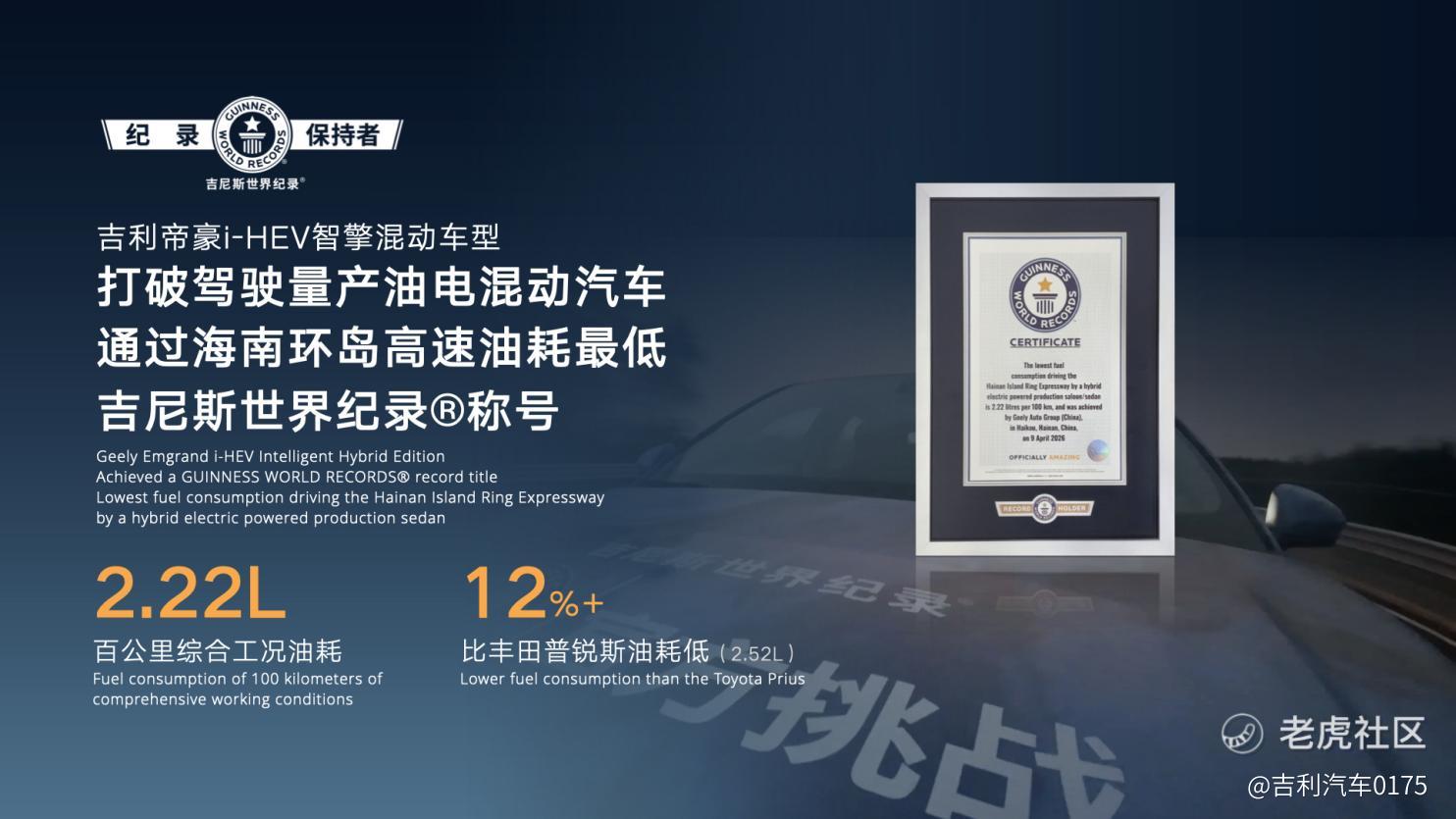 2026年4月13日,吉利汽车集团正式发布全球新一代AI油电混动技术方案——i-HEV智擎混动,以“五大颠覆”技术革新,重构油电混动出行体验,树立全球油混技术新标杆。该技术在吉利全域AI 2.0技术赋能下,深度融合全球顶尖的动力系统和行业前沿的三电技术,凭借低至2.22L实测百公里综合油耗、全球量产最高48.41%发动机热效率、首个HEV车型1级能效等,刷新行业多项纪录,全面颠覆传统油电混动技术。同时,吉利i-HEV智擎混动技术发布即量产,今年将率先搭载在星瑞、星越L、第四代博越L、第5代帝豪等多款中国星主销车型上,其中星越L i-HEV智擎混动和星瑞i-HEV智擎混动将于4月19日开启预售,让全球用户快速享受到新一代AI油电混动技术带来的更智能、更节能、更性能、更安全、更可靠的全新出行体验。