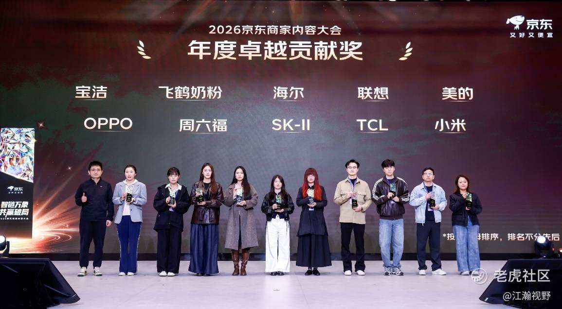 大会同期为品牌颁发2025年度内容生态奖项,海尔、联想、美的、OPPO、飞鹤、宝洁、周六福等获年度卓越贡献奖,爱他美、a2、富士达电动车、小牛电动等获年度突出贡献品牌奖,弗列加特、山下有松等获新锐品牌荣誉奖,AMD、海尔、汤臣倍健、五粮液、紫色花语等获年度AI直播先锋奖。
