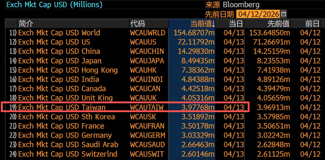 目前,台湾股市总市值达到3.98万亿美元,即将超越英国的4.05万亿,跃居全球第7大股市!