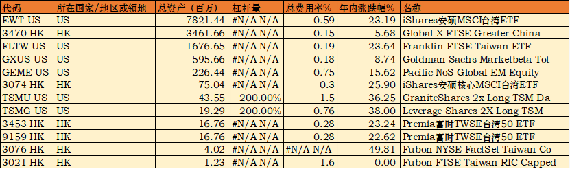 目前,与台湾有关的ETF有: