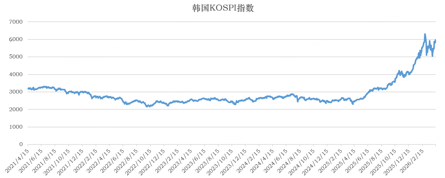 今日,韩国KOSPI指数大涨2.7%,盘中一度重回6000点,距离历史最高的6307点并不遥远: