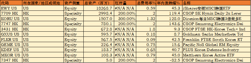 杠杆型产品: $南方两倍做多海力士(07709)$ $南方两倍做多三星电子(07747)$ $Direxion Daily MSCI South Korea Bull 3x Shares(KORU)$
