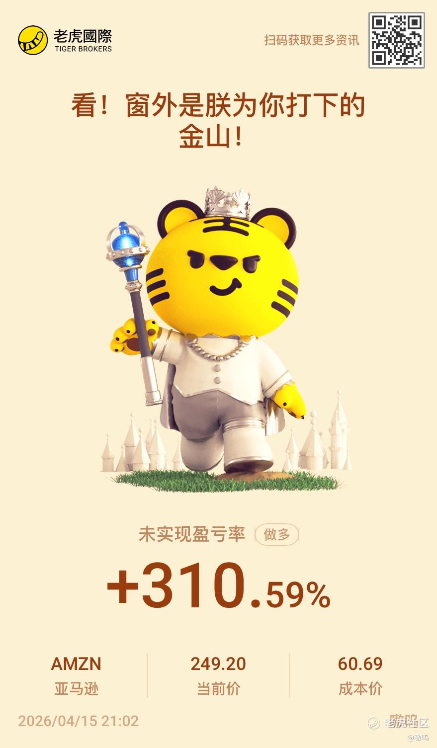 {"i18n":{"language":"zh_CN"},"detailType":1,"isChannel":false,"data":{"magic":2,"id":553875733608152,"tweetId":"553875733608152","gmtCreate":1776258204598,"gmtModify":1776258217349,"author":{"id":3447888725522988,"idStr":"3447888725522988","authorId":3447888725522988,"authorIdStr":"3447888725522988","name":"嗷呜","avatar":"https://static.tigerbbs.com/f612edd23b86a398626f8475d889c786","vip":1,"userType":1,"introduction":"","boolIsFan":false,"boolIsHead":false,"crmLevel":5,"crmLevelSwitch":0,"currentWearingBadge":{"badgeId":"35ec162348d5460f88c959321e554969-2","templateUuid":"35ec162348d5460f88c959321e554969","name":"宗师交易员","description":"证券或期货账户累计交易次数达到100次","bigImgUrl":"https://static.tigerbbs.com/ad22cfbe2d05aa393b18e9226e4b0307","smallImgUrl":"https://static.tigerbbs.com/36702e6ff3ffe46acafee66cc85273ca","grayImgUrl":"https://static.tigerbbs.com/d52eb88fa385cf5abe2616ed63781765","redirectLinkEnabled":0,"hasAllocated":1,"isWearing":1,"stampPosition":0,"hasStamp":0,"allocationCount":1,"allocatedDate":"2021.12.21","exceedPercentage":"80.90%","individualDisplayEnabled":0},"individualDisplayBadges":[],"wearingBadges":[{"badgeId":"35ec162348d5460f88c959321e554969-2","name":"宗师交易员","description":"证券或期货账户累计交易次数达到100次","smallImgUrl":"https://static.tigerbbs.com/36702e6ff3ffe46acafee66cc85273ca","bigImgUrl":"https://static.tigerbbs.com/ad22cfbe2d05aa393b18e9226e4b0307","isScarce":0,"effectEnabled":0,"redirectLinkEnabled":0,"redirectLinkValidityFrom":0,"redirectLinkValidityTo":9223372036854776000}],"fanSize":243,"starInvestorFlag":false},"themes":[{"themeId":"5bfad02ab61749c8bfe6573ac7bbe8a3","categoryId":"b76d3c59fc044df59779c041b25852a6","name":"晒晒更赚钱","type":0,"rnLink":"https://laohu8.com/RN?name=RNTheme&page=/theme/detail&rndata={\"themeId\":5bfad02ab61749c8bfe6573ac7bbe8a3}&rnconfig={\"headerBarHidden\": true}","description":"晒晒你的盈亏单,秀秀虎友们的实力!","image":"https://static.tigerbbs.com/347184265ee0be8c363259951f8033cb"}],"images":[{"img":"https://static.tigerbbs.com/11b9fde6563f5b569133541a10ae687e","width":"879","height":"1505"}],"coverImages":[{"img":"https://static.tigerbbs.com/11b9fde6563f5b569133541a10ae687e","width":"879","height":"1505"}],"title":"","html":"<html><head></head><body><a href=\"https://laohu8.com/S/AMZN\">$亚马逊(AMZN)$ </a><v-v data-views=\"1\"></v-v> 终于过300%了,好多年了,都忘了拿了多久了<span>[捂脸] </span> <img src=\"https://static.tigerbbs.com/11b9fde6563f5b569133541a10ae687e\" tg-width=\"879\" tg-height=\"1505\"></body></html>","htmlText":"<html><head></head><body><a href=\"https://laohu8.com/S/AMZN\">$亚马逊(AMZN)$ </a><v-v data-views=\"1\"></v-v> 终于过300%了,好多年了,都忘了拿了多久了<span>[捂脸] </span> <img src=\"https://static.tigerbbs.com/11b9fde6563f5b569133541a10ae687e\" tg-width=\"879\" tg-height=\"1505\"></body></html>","text":"$亚马逊(AMZN)$ 终于过300%了,好多年了,都忘了拿了多久了[捂脸]","highlighted":1,"essential":1,"paper":1,"likeSize":9,"commentSize":1,"repostSize":3,"favoriteSize":0,"link":"https://laohu8.com/post/553875733608152","repostId":0,"isVote":1,"tweetType":1,"viewCount":2657,"commentLimit":10,"likeStatus":false,"favoriteStatus":false,"reportStatus":false,"symbols":["AMZN"],"verified":2,"subType":0,"readableState":1,"langContent":"CN","currentLanguage":"CN","warmUpFlag":false,"orderFlag":false,"shareable":true,"causeOfNotShareable":"","featuresForAnalytics":["晒单贴"],"commentAndTweetFlag":false,"andRepostAutoSelectedFlag":false,"upFlag":false,"length":58,"optionInvolvedFlag":false,"xxTargetLangEnum":"ZH_CN"},"commentList":[{"id":554469946626776,"commentId":"554469946626776","gmtCreate":1776403206906,"gmtModify":1776403211543,"authorId":5400656025182,"author":{"id":5400656025182,"idStr":"5400656025182","authorId":5400656025182,"name":"vision","avatar":"https://static.tigerbbs.com/d67e47e5bb77491f2c37ae81c5386950","vip":1,"currentWearingBadge":{"badgeId":"35ec162348d5460f88c959321e554969-3","templateUuid":"35ec162348d5460f88c959321e554969","name":"传说交易员","description":"证券或期货账户累计交易次数达到300次","bigImgUrl":"https://static.tigerbbs.com/656db16598a0b8f21429e10d6c1cb033","smallImgUrl":"https://static.tigerbbs.com/03f10910d4dd9234f9b5702a3342193a","grayImgUrl":"https://static.tigerbbs.com/0c767e35268feb729d50d3fa9a386c5a","redirectLinkEnabled":0,"hasAllocated":1,"isWearing":1,"stampPosition":0,"hasStamp":0,"allocationCount":1,"allocatedDate":"2021.12.21","exceedPercentage":"93.88%","individualDisplayEnabled":0,"individualDisplaySort":0,"categoryType":1100,"isScarce":0,"effectEnabled":0,"wearingSort":0},"hat":"https://static.tigerbbs.com/2dbc245fdbd9b115beaa630c8980fb6f","crmLevel":7,"crmLevelSwitch":0,"individualDisplayBadges":[{"badgeId":"3f8f4b8c193b4343a88817ce07587dbd-1","templateUuid":"3f8f4b8c193b4343a88817ce07587dbd","name":"星级创作者","description":"累计发表精华帖>=3(或有料帖>=10),且30天内发表过至少一篇精华帖(或4篇有料帖)并参与过评论","bigImgUrl":"https://static.tigerbbs.com/1866dcf97a73be1c330f85862546aedc","smallImgUrl":"https://static.tigerbbs.com/4f5c5fa8e2c7683bb5a7fce8753ee456","redirectLinkEnabled":1,"redirectLinkType":1,"redirectLink":"https://www.laohu8.com/activity/market/2023/star-contributors/","redirectLinkValidityFrom":1680048000000,"redirectLinkValidityTo":1996358400000,"hasAllocated":1,"isWearing":0,"stampPosition":0,"hasStamp":0,"allocationCount":1,"allocatedDate":"2026.04.22","individualDisplayEnabled":1,"backgroundColor":{"dark":"#675a37","tint":"#f9ebc2"},"fontColor":{"dark":"#ffffff","tint":"#ab7a0e"},"individualDisplaySort":1,"categoryType":2007,"isScarce":0,"effectEnabled":0,"wearingSort":0,"validityTo":"2026.05.22"}],"wearingBadges":[{"badgeId":"35ec162348d5460f88c959321e554969-3","name":"传说交易员","description":"证券或期货账户累计交易次