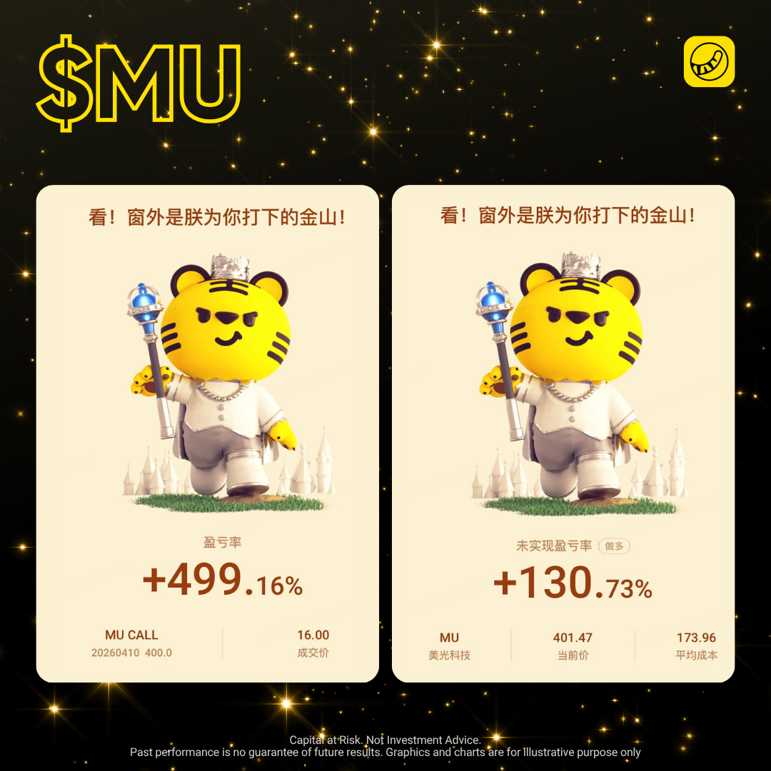 恭喜 @打劫华尔街 交易 $美光科技(MU)$ 看涨期权收益 499%;