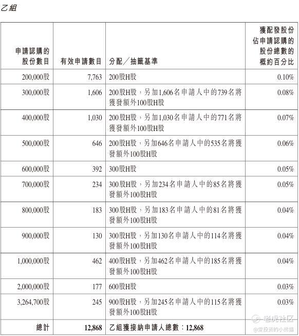 长光辰芯(03277.HK) 乙组官方披露的中签名单: