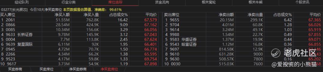 长光辰芯(03277.HK) 买盘席位有2061、0866、0085、9633、0945等,卖盘第一席位是9655。