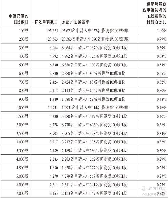有9000人认购中签200股,有2704人认购中签300股,有557人中签400股,有人185认购中签500股,有177人认购中签600股,