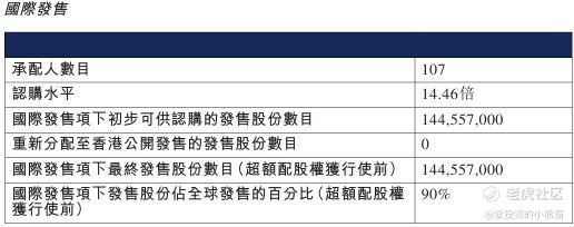 MANYCORE TECH(00068.HK)国际配售总共107人,认购额14.46倍。