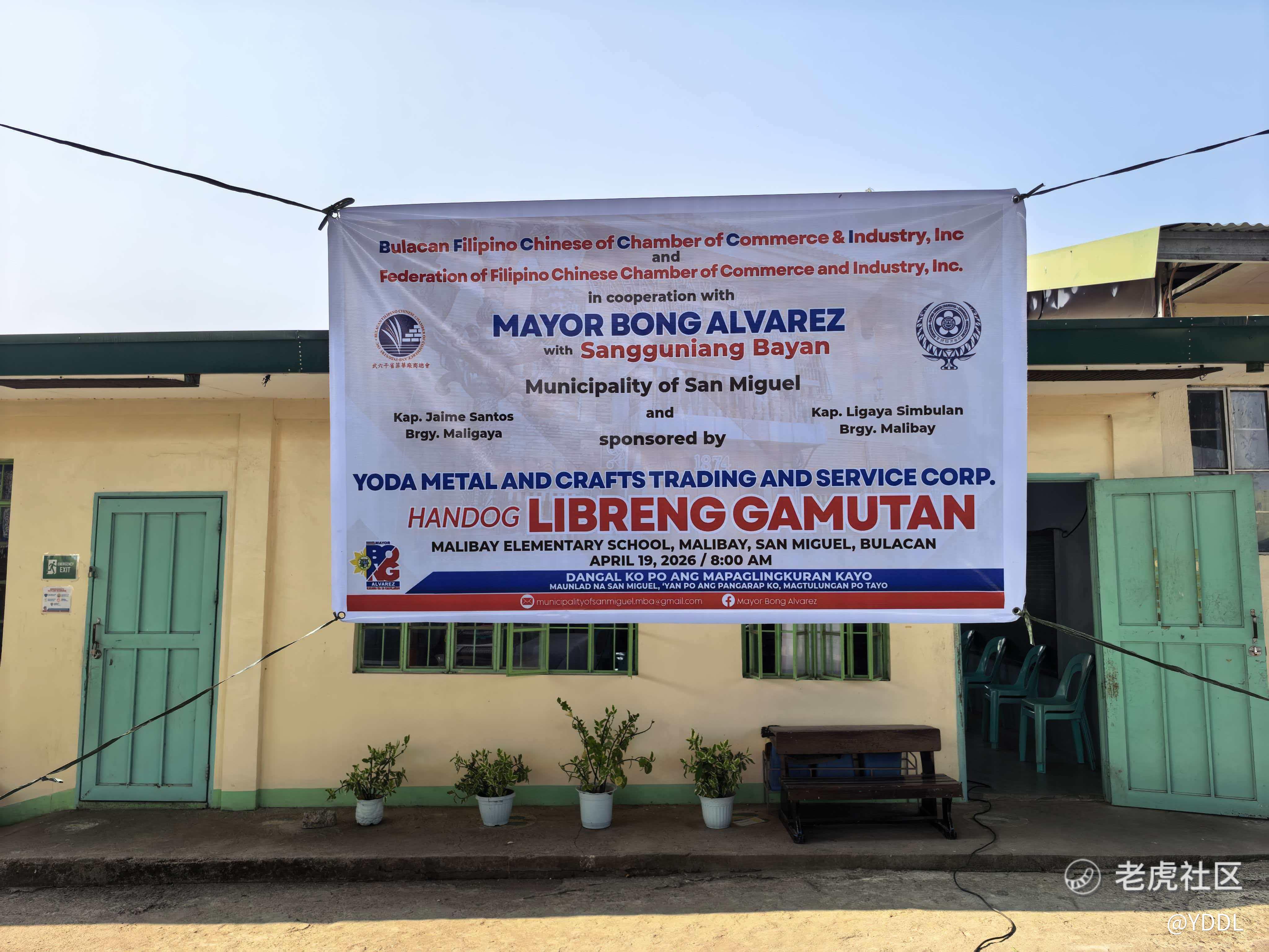 2026年4月19日, $One and one Green(YDDL)$ 联合布拉干省菲华工商总会、菲律宾菲华商联总会及当地政府,在菲律宾布拉干省圣米格尔镇马里贝小学(Malibay Elementary School)举办“Handog Libreng Gamutan(免费公益义诊赠药活动)”,为当地及周边社区居民提供基础医疗服务。