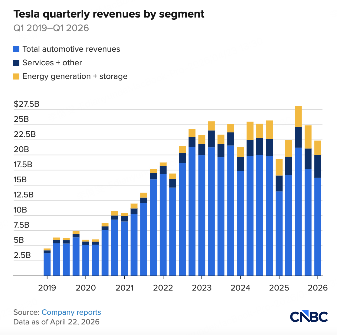 特斯拉1季度收入为223.9 亿美元,低于LSEG分析师预期的 226.4 亿美元。
