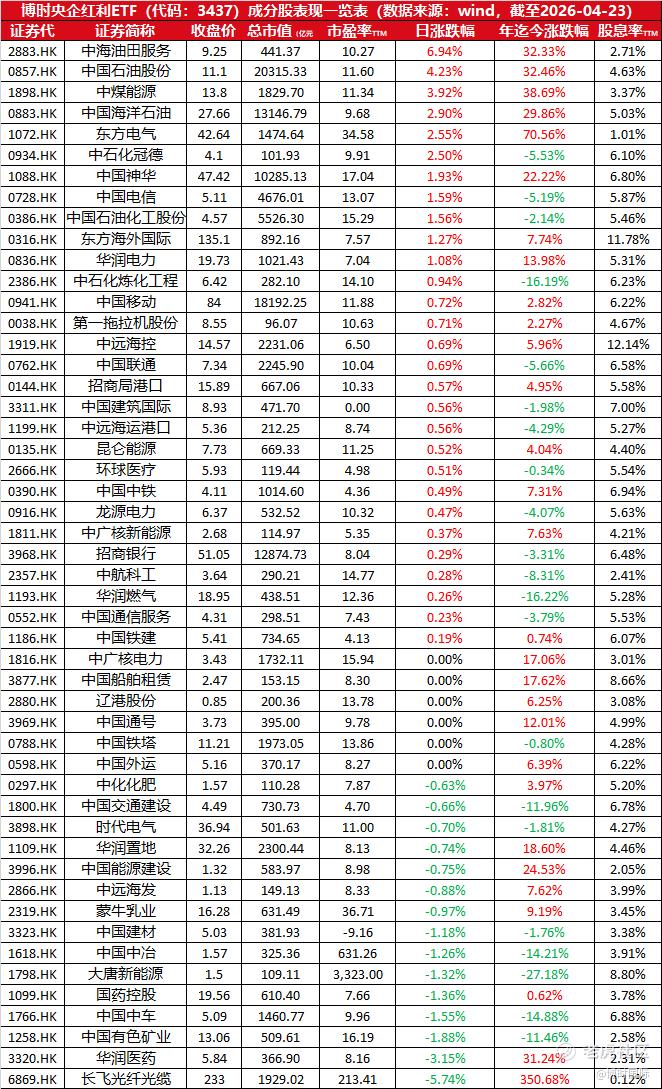 $博时央企红利(03437)$ 今年以来,国新港股通央企红利指数涨幅达+12.13%;本基金TTM股息率为6.53%