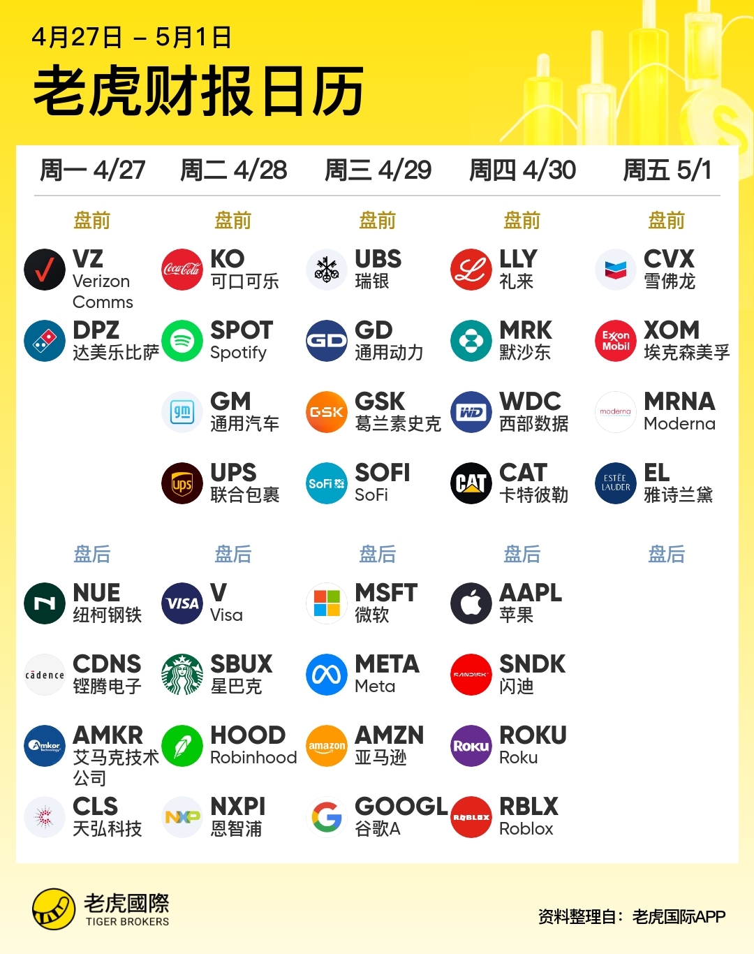 下周三,Microsoft、Alphabet、Meta、Amazon同日发布财报,Apple财报稍晚一天于周四发布;