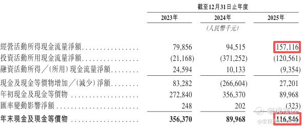 截至2025年12月31日,账上现金约人民币1.17亿元,经营活动所得现金净额为1.57亿元,基本面不错的。