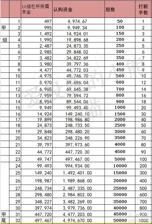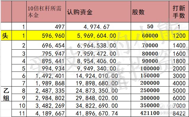 这个票乙头需要认购资金597万,乙组的各档融资所需要的本金还有融资金额对应如下表: