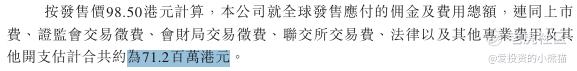 然后这个票招股书上按发售价98.50港元计算,公开的上市所有开支总额约为7120万港元,募资额约8.30亿港元,占比约8.58%,开支相比募资额算是一般化了。