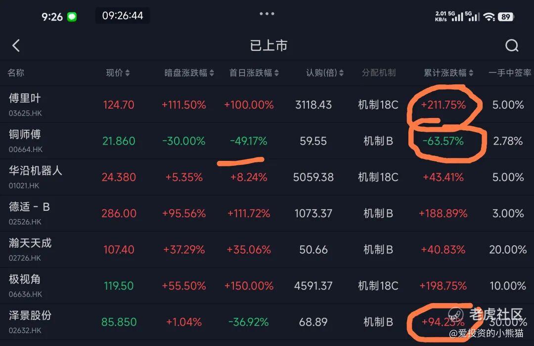 但这这问题就来了,这个票到底是 要冲港股通,还是要市场化?还是先洗后拉,还是其他什么玩法?这个真的只能靠猜,只能靠赌,前几个四五十亿的票,看看泽景和黄师傅还有傅里叶,那就是三种不同的风格,傅立叶就是一步到位,甚至冲得更高,还远不止100多亿,累计涨幅两倍多。铜师傅就是完全市场化发行,至今已经跌去60%,首日就跌了50%!完全就是一个天一个地。老子的黄师傅还是小米作为股东投资人投的呢!都死成这样了,唉现在这成交量,别说投资人了,国配锚定都退不出来,这个票拿国配锚定的人可真的那惨了。