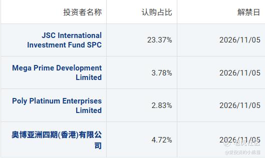 2. Mega Prime Development Limited:认购占比3.78%,为大湾区共同家园投资有限公司旗下的投资实体。大湾区共同家园基金是响应国家大湾区战略设立的大型基金,首期规模约100亿港币,重点投向科技创新、产业升级与生物科技领域,是粤港澳大湾区重要的产业投资力量。