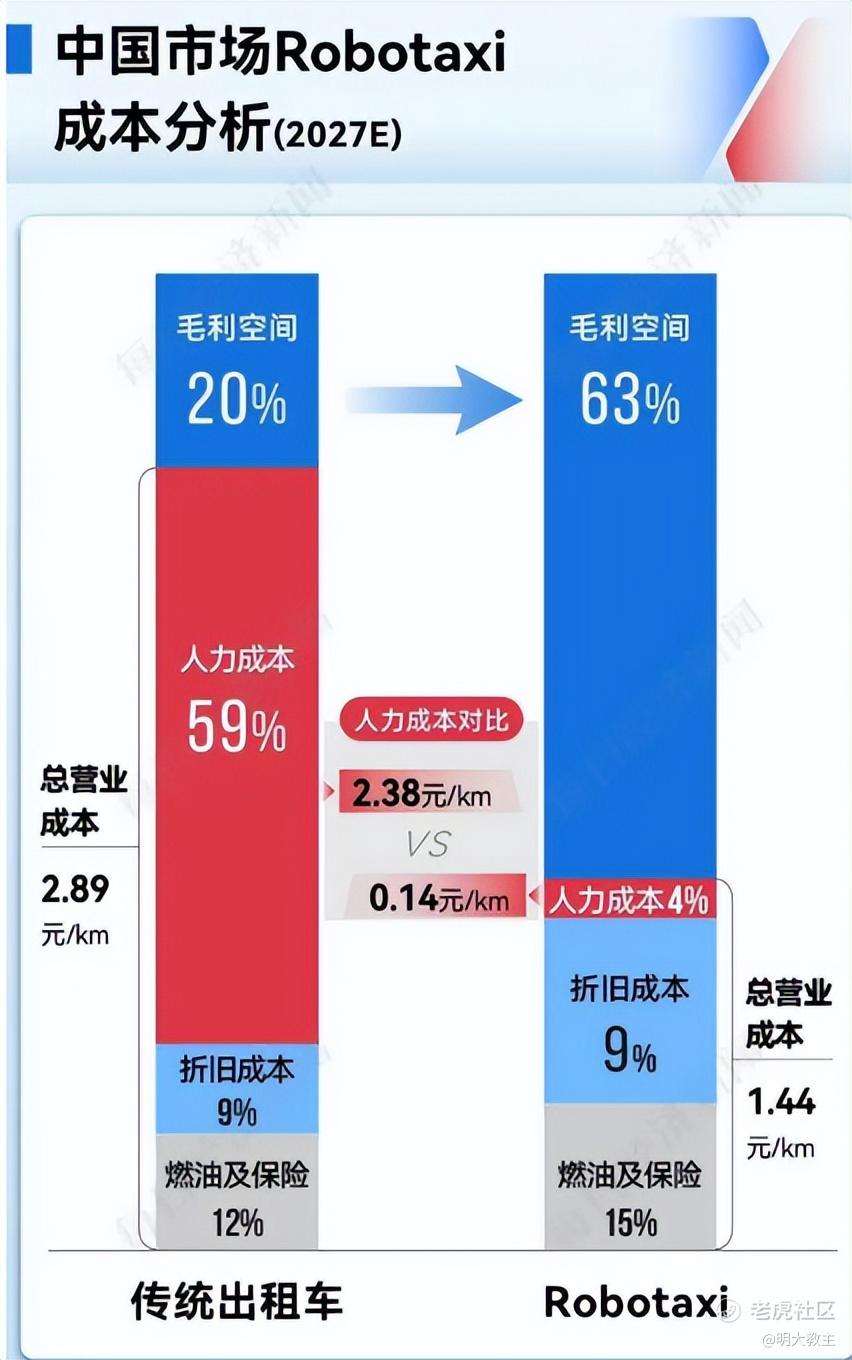 另有机构预计Robotaxi 2027年总运营成本1.44元/Km,较传统出租车低一半。