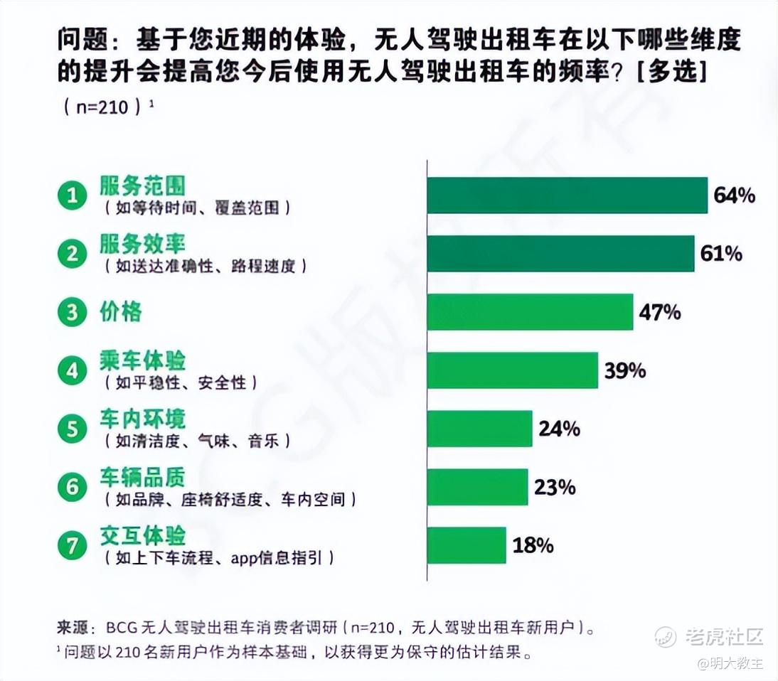 波士顿咨询在中国开展的一项针对无人驾驶出租车消费者的问卷调查结果显示,除了受Robotaxi 政策影响的服务范围、服务效率两点外,消费者最看重的是价格和乘车体验(是否安全)。这与私家车消费者更看重动力、空间、智能体验截然不同。而曹操出行这款深度定制原生Robotaxi作为国内首款预装专属自动驾驶组件及应用的原生Robotaxi,刷新了我对Robotaxi 安全及整车成本的认知。