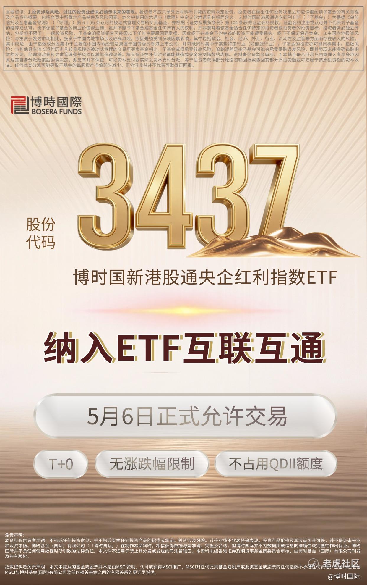 $博时央企红利(03437)$ 纳入ETF互联互通,将于2026年5月6日正式允许交易。