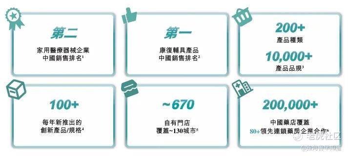 截至最后实际可行日期,可孚医疗的产品组合涵盖超200个产品类别、上万个产品品规。随着现代社会人口结构变化与生活方式转变,公司战略性聚焦五类具有强劲增长潜力和显著市场需求的家用医疗器械,包括康复辅具类产品、医疗护理类产品、健康监测类产品、呼吸支持类产品以及中医理疗类及其他类产品。具体而言,于2024年,按国内收入计,公司在中国所有康复辅具类产品企业中排名第一,市场份额达2.4%。于2024年,中国家用康复辅具类产品市场**国家用医疗器械市场的23.5%。