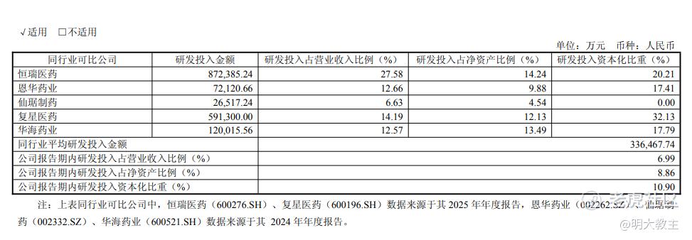 人福可比企业研发投入/营业收入多在10%-15%之间。人福2025年这一数值只有6.99%。人福研发强度较同业偏低,加大投入时不我待。