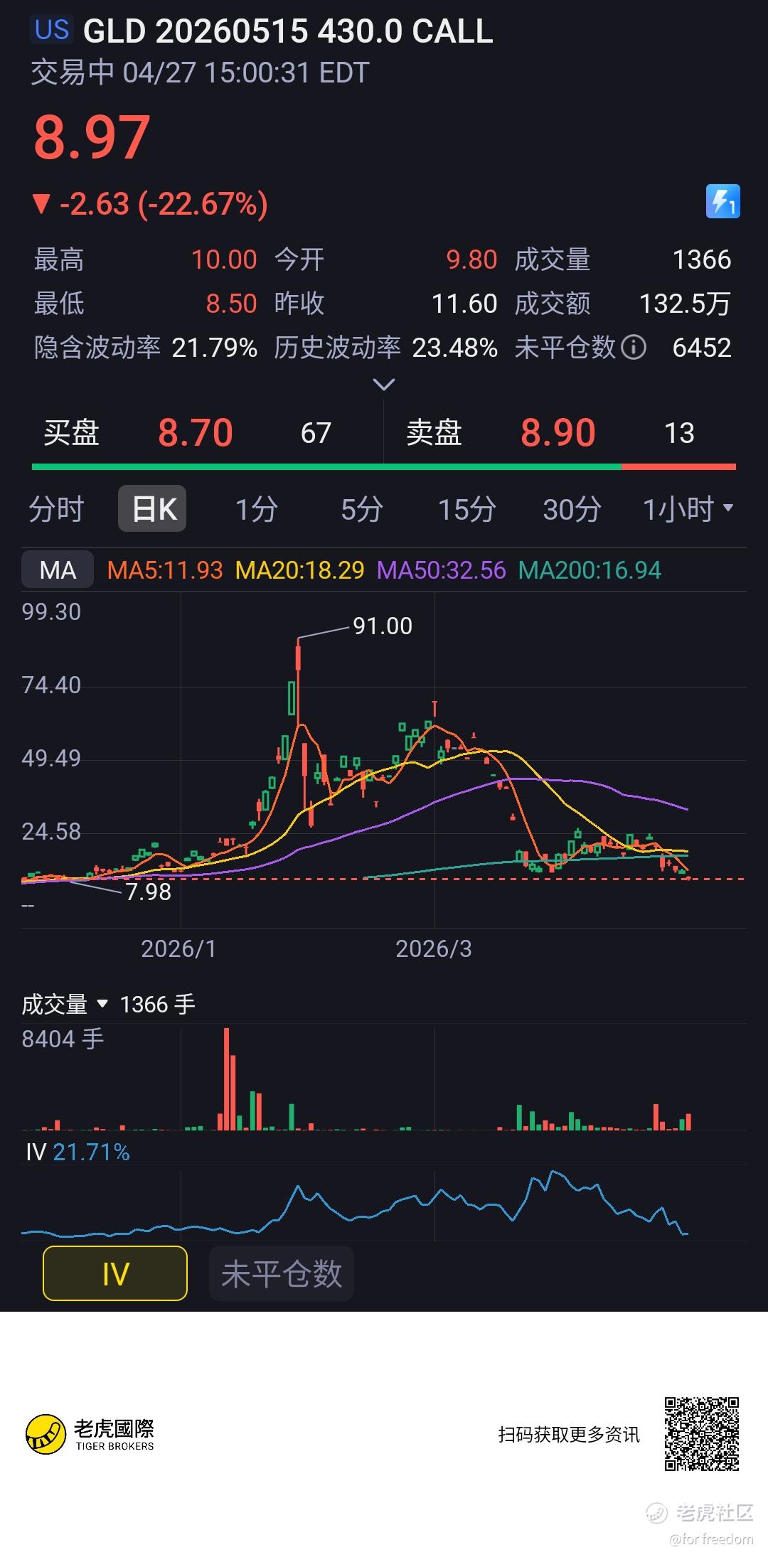 {"i18n":{"language":"zh_CN"},"detailType":1,"isChannel":false,"data":{"magic":2,"id":558222657654912,"tweetId":"558222657654912","gmtCreate":1777316518449,"gmtModify":1777316521661,"author":{"id":3463446769405484,"idStr":"3463446769405484","authorId":3463446769405484,"authorIdStr":"3463446769405484","name":"千倍之路","avatar":"https://static.tigerbbs.com/4872d62b52bc24d392619a9db00f4808","vip":1,"userType":1,"introduction":"","boolIsFan":false,"boolIsHead":false,"crmLevel":5,"crmLevelSwitch":1,"currentWearingBadge":{"badgeId":"e50ce593bb40487ebfb542ca54f6a561-4","templateUuid":"e50ce593bb40487ebfb542ca54f6a561","name":"明星虎友","description":"加入老虎社区2000天","bigImgUrl":"https://static.tigerbbs.com/dddf24b906c7011de2617d4fb3f76987","smallImgUrl":"https://static.tigerbbs.com/53d58ad32c97254c6f74db8b97e6ec49","grayImgUrl":"https://static.tigerbbs.com/6304700d92ad91c7a33e2e92ec32ecc1","redirectLinkEnabled":0,"hasAllocated":1,"isWearing":1,"stampPosition":0,"hasStamp":0,"allocationCount":1,"allocatedDate":"2023.01.09","individualDisplayEnabled":0},"individualDisplayBadges":[],"wearingBadges":[],"fanSize":1305,"starInvestorFlag":false},"themes":[],"images":[{"img":"https://static.tigerbbs.com/c59da834181864514404e83e4826a890","width":"1080","height":"2190"}],"coverImages":[{"img":"https://static.tigerbbs.com/c59da834181864514404e83e4826a890","width":"1080","height":"2190"}],"title":"","html":"<html><head></head><body><p><a href=\"https://laohu8.com/OPT/GLD 20260515 430.0 CALL\">$GLD 20260515 430.0 CALL$ </a> 暴涨之后,行情趋于平淡,iv暴跌,期权损耗巨大</p><img src=\"https://static.tigerbbs.com/c59da834181864514404e83e4826a890\" tg-width=\"1080\" tg-height=\"2190\"></body></html>","htmlText":"<html><head></head><body><p><a href=\"https://laohu8.com/OPT/GLD 20260515 430.0 CALL\">$GLD 20260515 430.0 CALL$ </a> 暴涨之后,行情趋于平淡,iv暴跌,期权损耗巨大</p><img src=\"https://static.tigerbbs.com/c59da834181864514404e83e4826a890\" tg-width=\"1080\" tg-height=\"2190\"></body></html>","text":"$GLD 20260515 430.0 CALL$ 暴涨之后,行情趋于平淡,iv暴跌,期权损耗巨大","highlighted":1,"essential":1,"paper":1,"likeSize":1,"commentSize":0,"repostSize":0,"favoriteSize":0,"link":"https://laohu8.com/post/558222657654912","repostId":0,"isVote":1,"tweetType":1,"viewCount":89,"commentLimit":10,"likeStatus":false,"favoriteStatus":false,"reportStatus":false,"symbols":["GLD","GLD 20260515 430.0 CALL"],"verified":2,"subType":0,"readableState":1,"langContent":"CN","currentLanguage":"CN","warmUpFlag":false,"orderFlag":false,"shareable":true,"causeOfNotShareable":"","featuresForAnalytics":[],"commentAndTweetFlag":false,"andRepostAutoSelectedFlag":false,"upFlag":false,"length":63,"optionInvolvedFlag":true,"xxTargetLangEnum":"ZH_CN"},"commentList":[],"isCommentEnd":true,"isTiger":false,"isWeiXinMini":false,"url":"/m/post/558222657654912"}