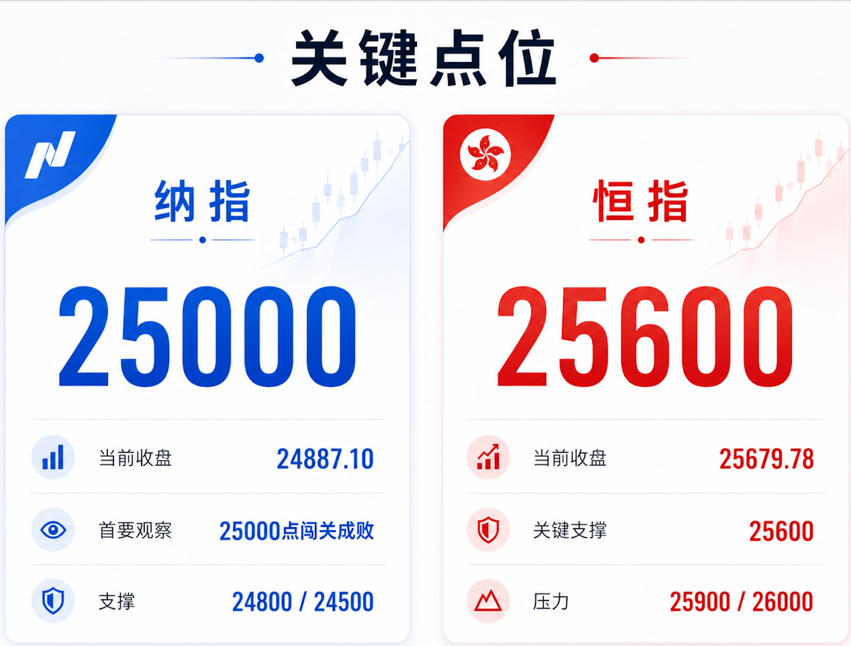点位:纳指冲关25000点,恒指退守25600点