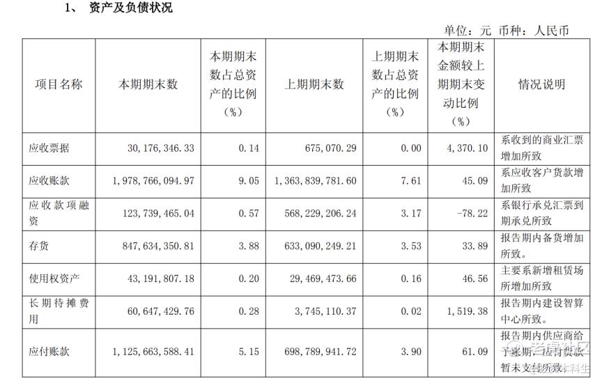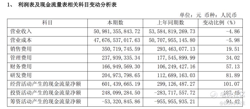 利润端,销售费用同比增19.51%,管理费用增34.02%,研发费用增81.89%,财务费用增57.13%。现在公司还处在平台升级和产业数智化投入阶段,都属于可以理解的资本性开支,短期看,费用率要上升,利润弹性被压,外加利息成本都要计入了。不过现阶段投入,感觉投资者应该都能接受。