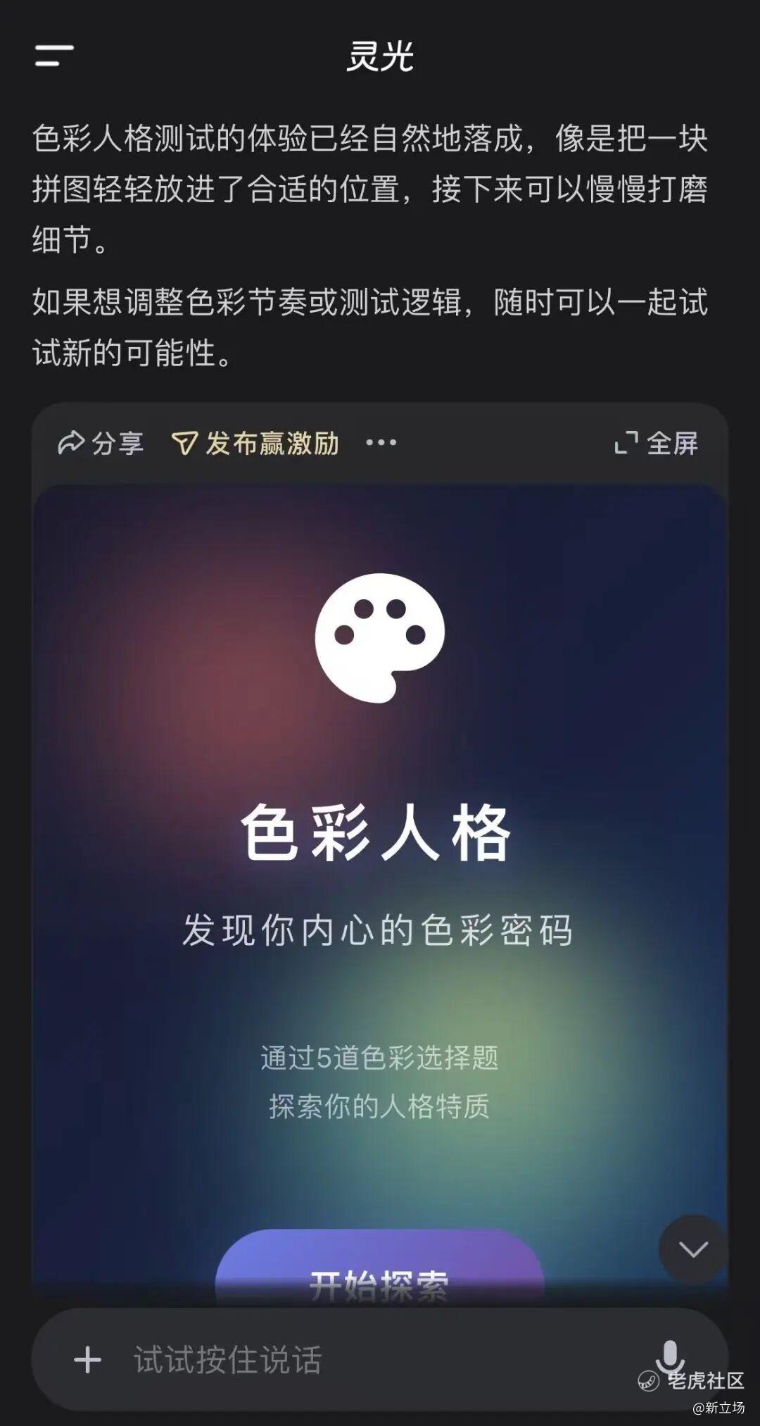 先看技术结构,灵光官方对闪应用的描述是“可以直接调用大模型等后端能力,让应用不仅能展示结果,还能实时与外部进行交互”,同时逐步接入手机端原生能力,包括相机、陀螺仪、定位、震动反馈等。这种能力增强,对产品是必要的,因为只有更丰富的交互、更强的状态管理和更深的系统调用,闪应用才可能从“可玩”走向“可用”。