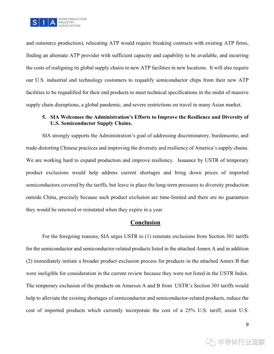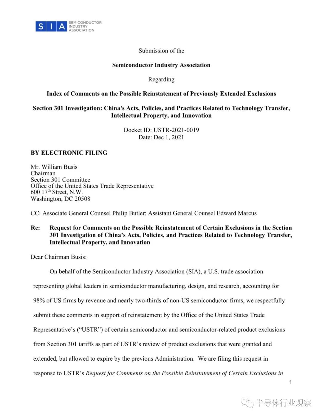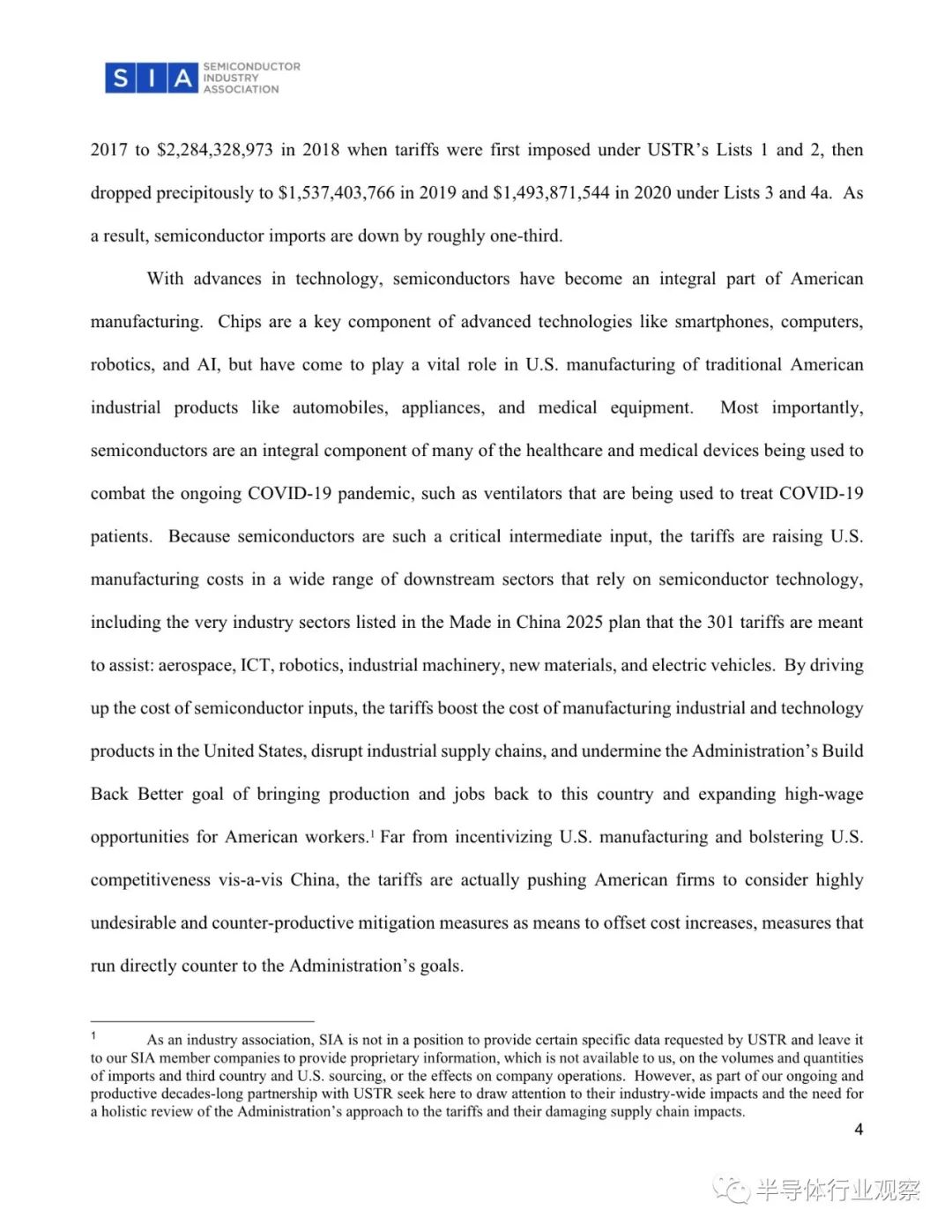 SIA 期待与政府合作,扩大关税排除程序,并从 USTR 的 301 条款关税中取消对半导体和相关产品的关税,以帮助缓解现有的半导体短缺,对抗持续的 COVID-19 大流行,并保持美国的竞争力和领导地位在全球半导体市场。